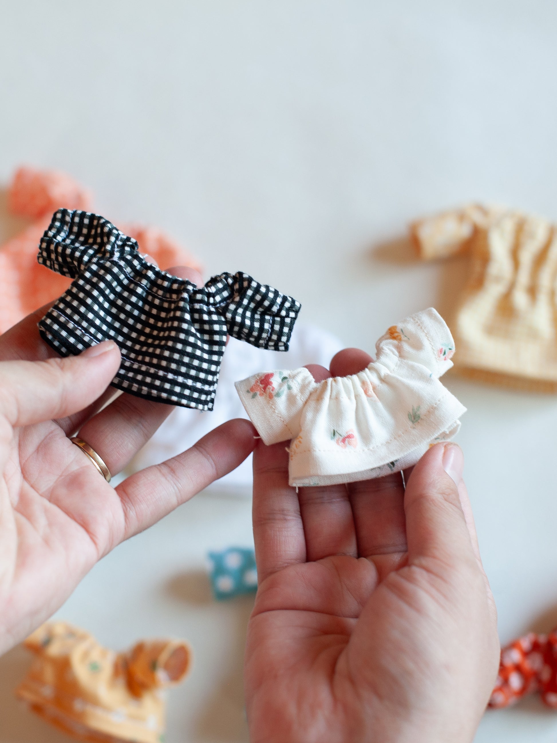 Dress your Dollhouse Critters in style with this PDF pattern and sewing tutorial. Suitable for use with many different non-stretch fabric options, your potential for creativity is limitless. Includes 3 body length options and 3 sleeve length options. The instructions include links to video tutorials for some of the most difficult steps. Though slightly more challenging than some of my other patterns, I've poured time into this to make it as simple as I possibly can.